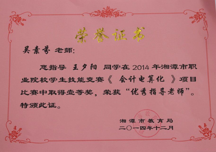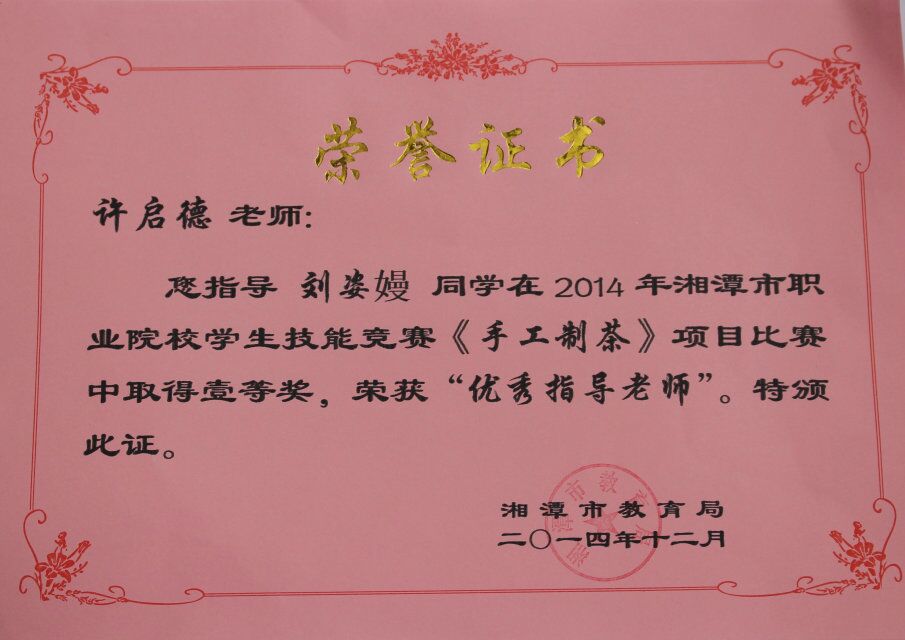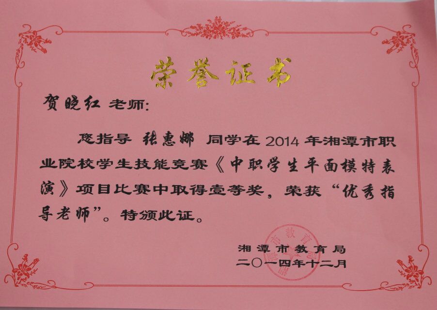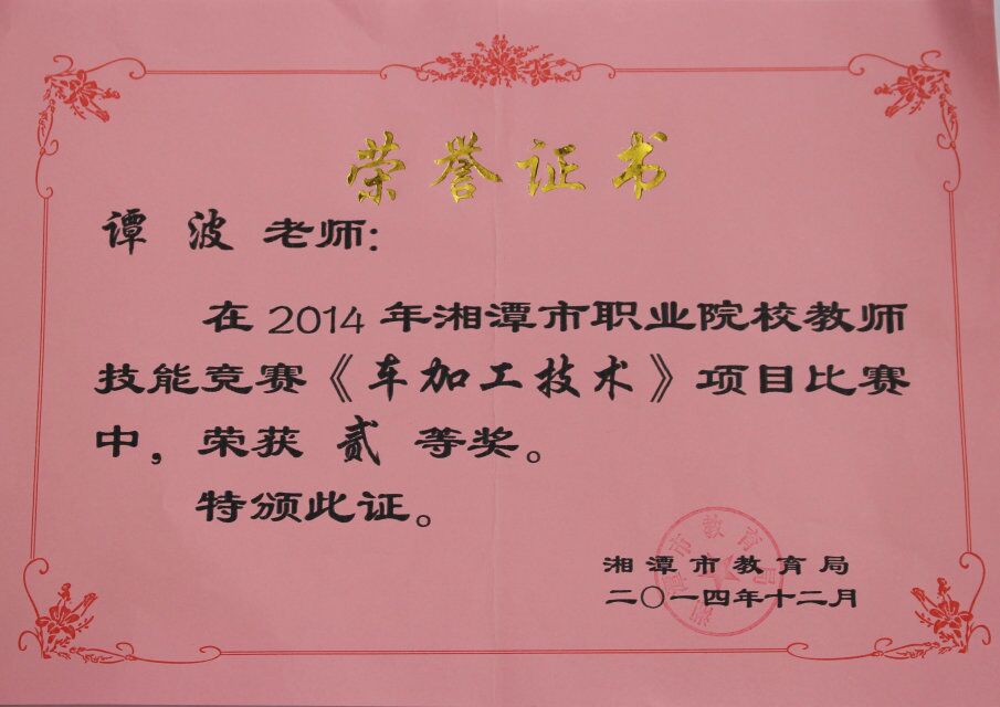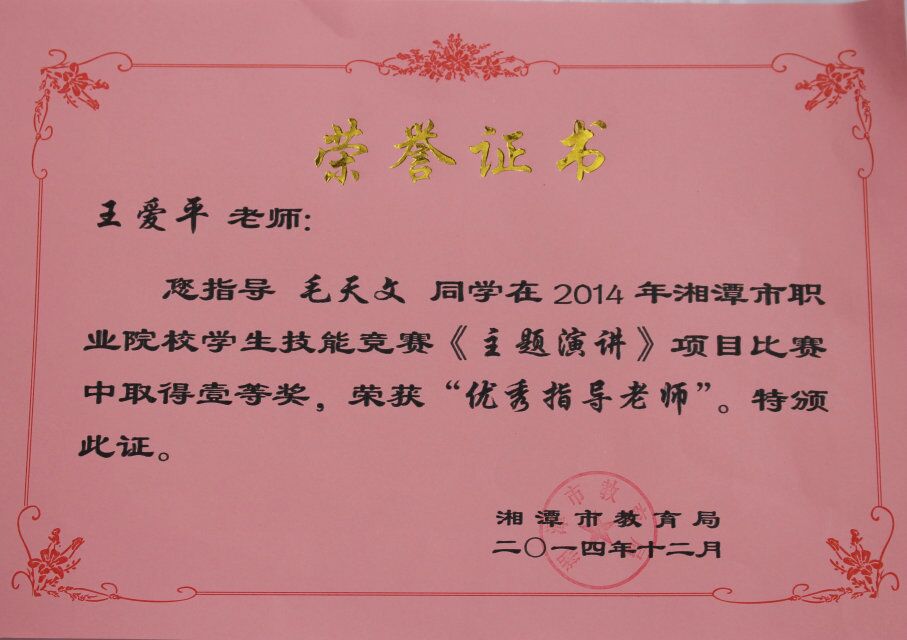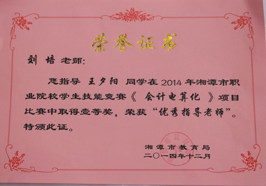 2014湘潭市技能競賽 指導(dǎo)老師證書 發(fā)布時(shí)間:2015-06-01      來源:湘潭生物機(jī)電學(xué)校