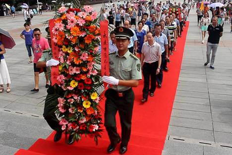 全體人員向毛主席銅像敬獻花籃